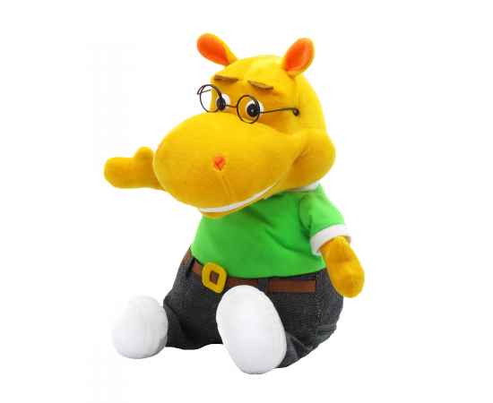 Это мягкая игрушка, выполненная в виде бегемота в стильном образе ботаника. Игрушка имеет яркий оранжевый цвет и украшена аксессуарами. Изготовленная из мягких и безопасных материалов, она идеальна для игр и обнимашек. 'Ботан' обладает дружелюбным и милым выражением, что делает её отличным подарком для детей и любителей оригинальных игрушек.