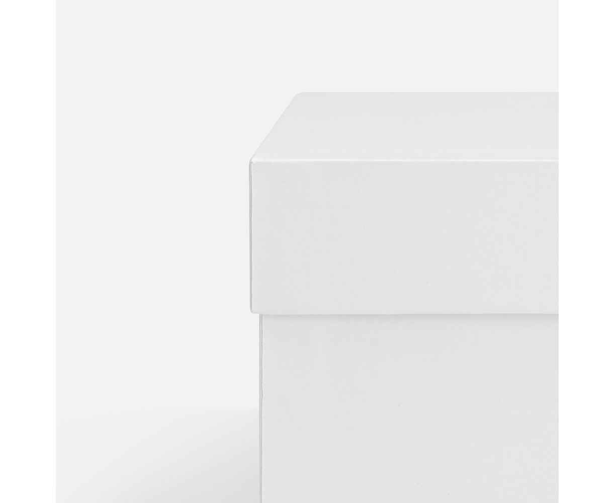 Коробка изготовлена из переплетного картона, кашированного дизайнерской бумагой.