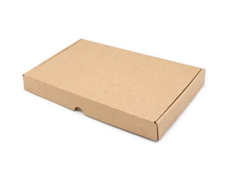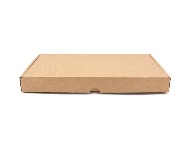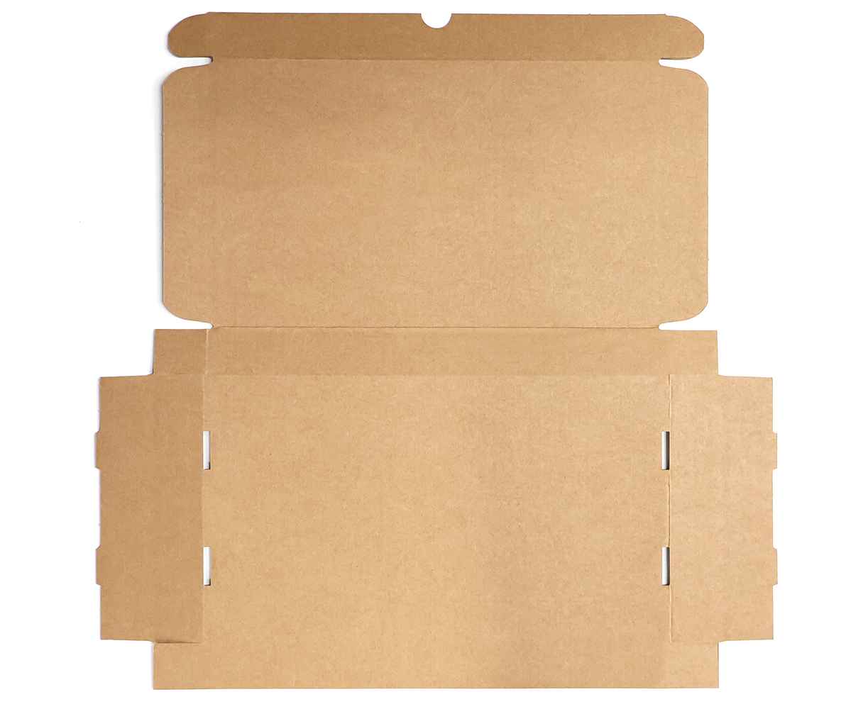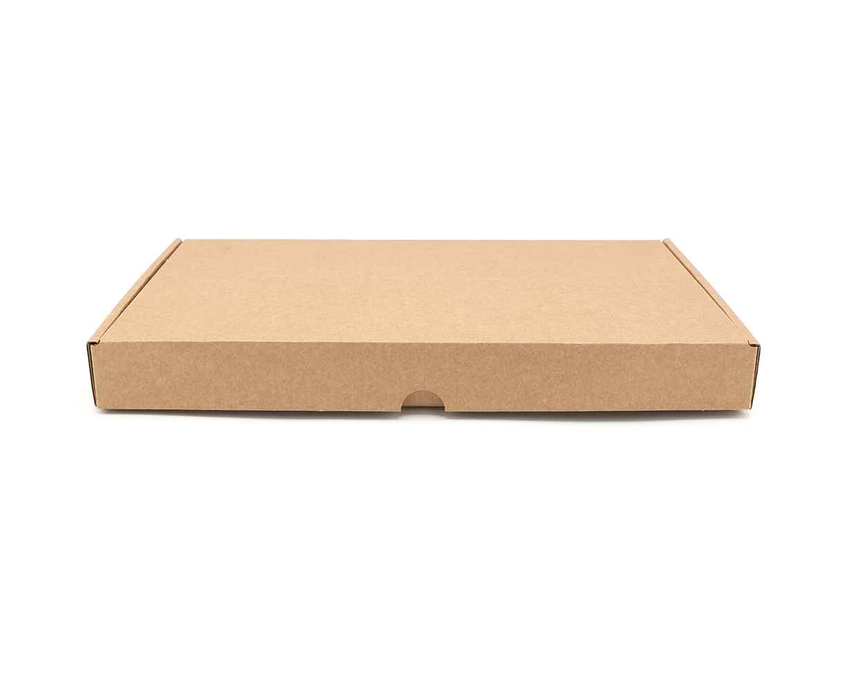 Самосборная коробка из бурого микрогофрокартона с внутренними размера 29,6*17*3 см.