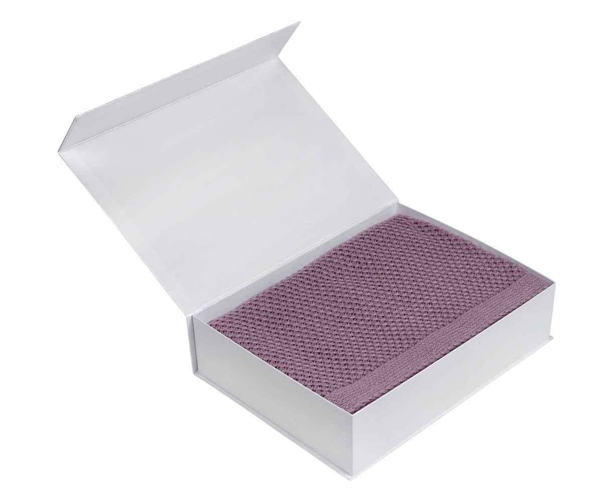 Коробка изготовлена из переплетного картона, кашированного дизайнерской бумагой Fabric Embossing Fine Linen.