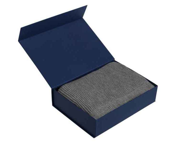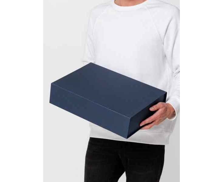 Коробка изготовлена из переплетного картона, кашированного дизайнерской бумагой Fabric Embosing Net.