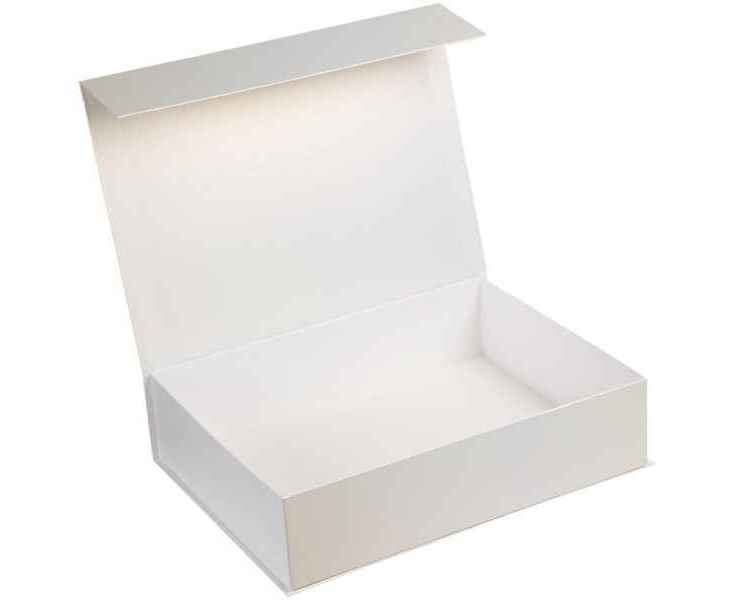 Коробка выполнена из переплетного картона, кашированного гладкой дизайнерской бумагой Majestic цвета «Золотой свет», с крышкой на магнитах.