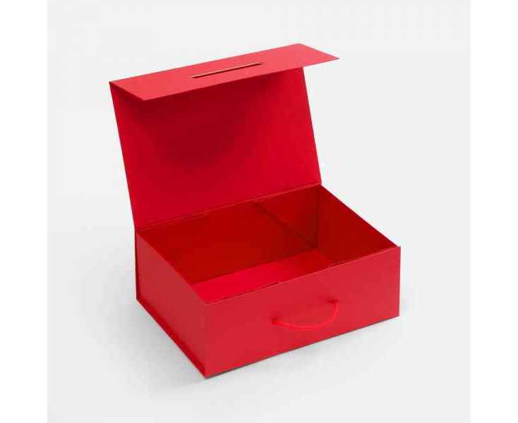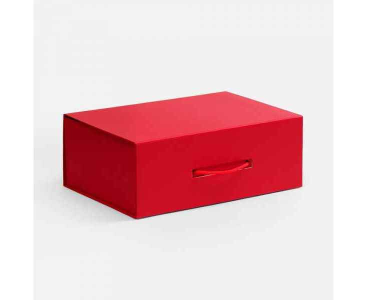 Складная коробка выполнена из переплетного картона, кашированного дизайнерской бумагой, с крышкой на магните.