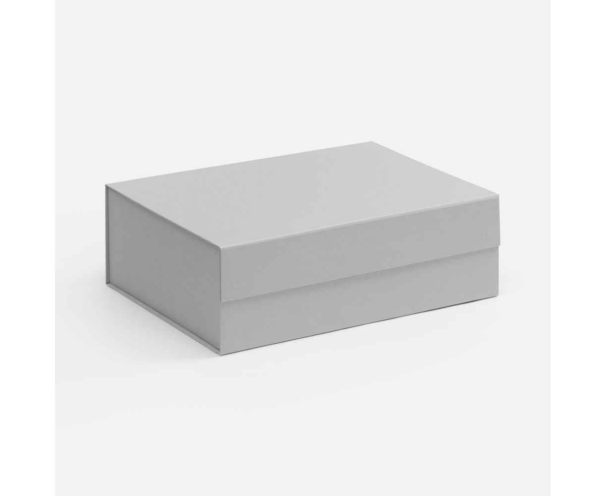 Подарочная коробка RealBig Fold изготовлена из переплетного картона, кашированного дизайнерской бумагой с крышкой на магните. Благодаря самосборной конструкции коробка легко и быстро собирается без дополнительных инструментов. Это идеальное сочетание эстетики и функциональности для упаковки ценных презентов и аксессуаров, где важны и практичность, и декоративность — для самого приятного впечатления от вручения.