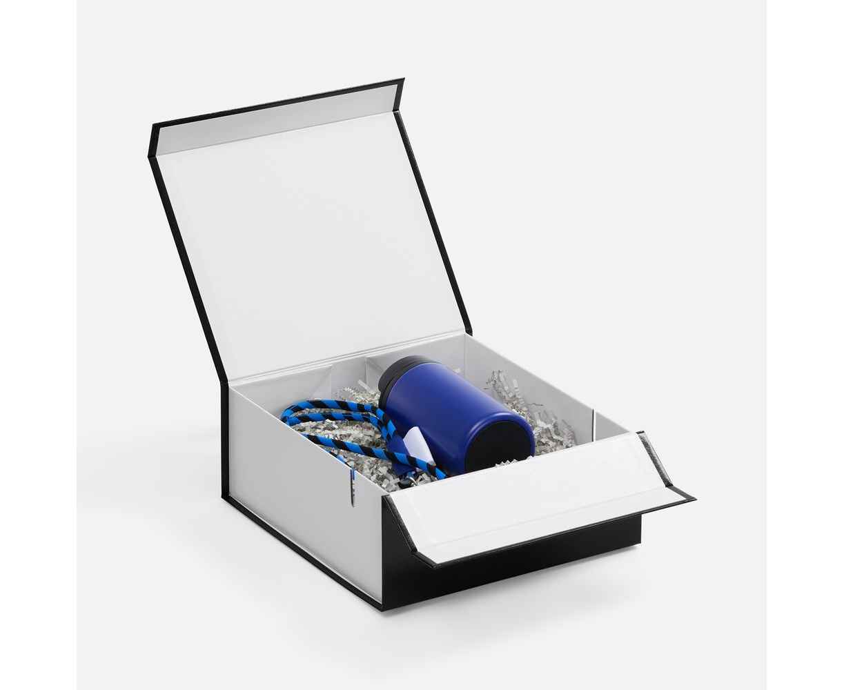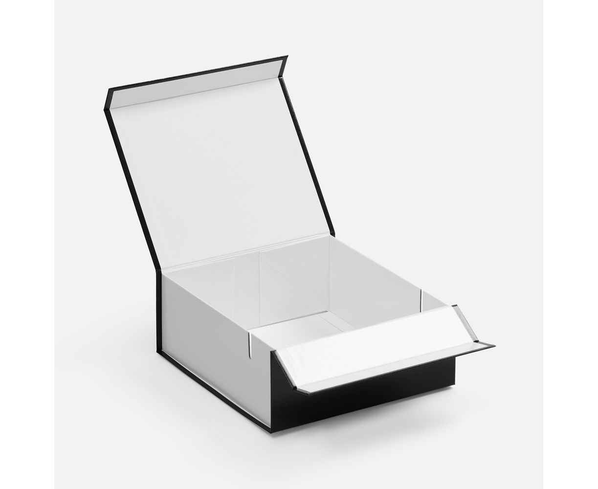 Плотная коробка из переплетного картона толщиной 2 мм с практичной конструкцией на двух створках. Складная система с уже нанесенным двусторонним скотчем позволяет быстро собрать коробку без дополнительных инструментов. Лайнер с полуглянцевым ламинированием устойчив к повреждениям и надолго сохраняет безупречный вид.
