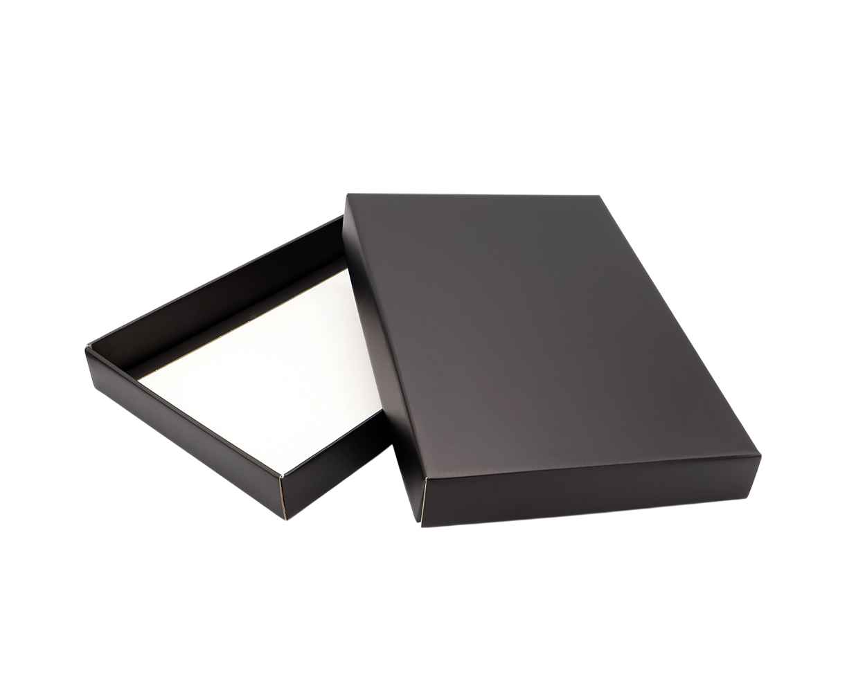 Стильная и функциональная коробка Warrant типа 'Крышка+дно' в классическом черном цвете с матовой поверхностью.