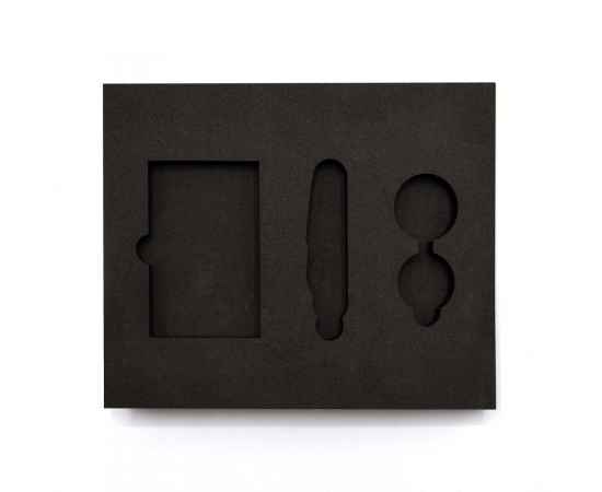 Ложемент, выполненный из черного ЭВА материала, представляет собой многослойную конструкцию, состоящую из 3х слоев: нижнего толщиной 5 мм, среднего 10мм, и верхнего — 10 мм. Согласно утвержденному макету, проемы для размещения предметов могут быть расположены во всех 3 слоях.