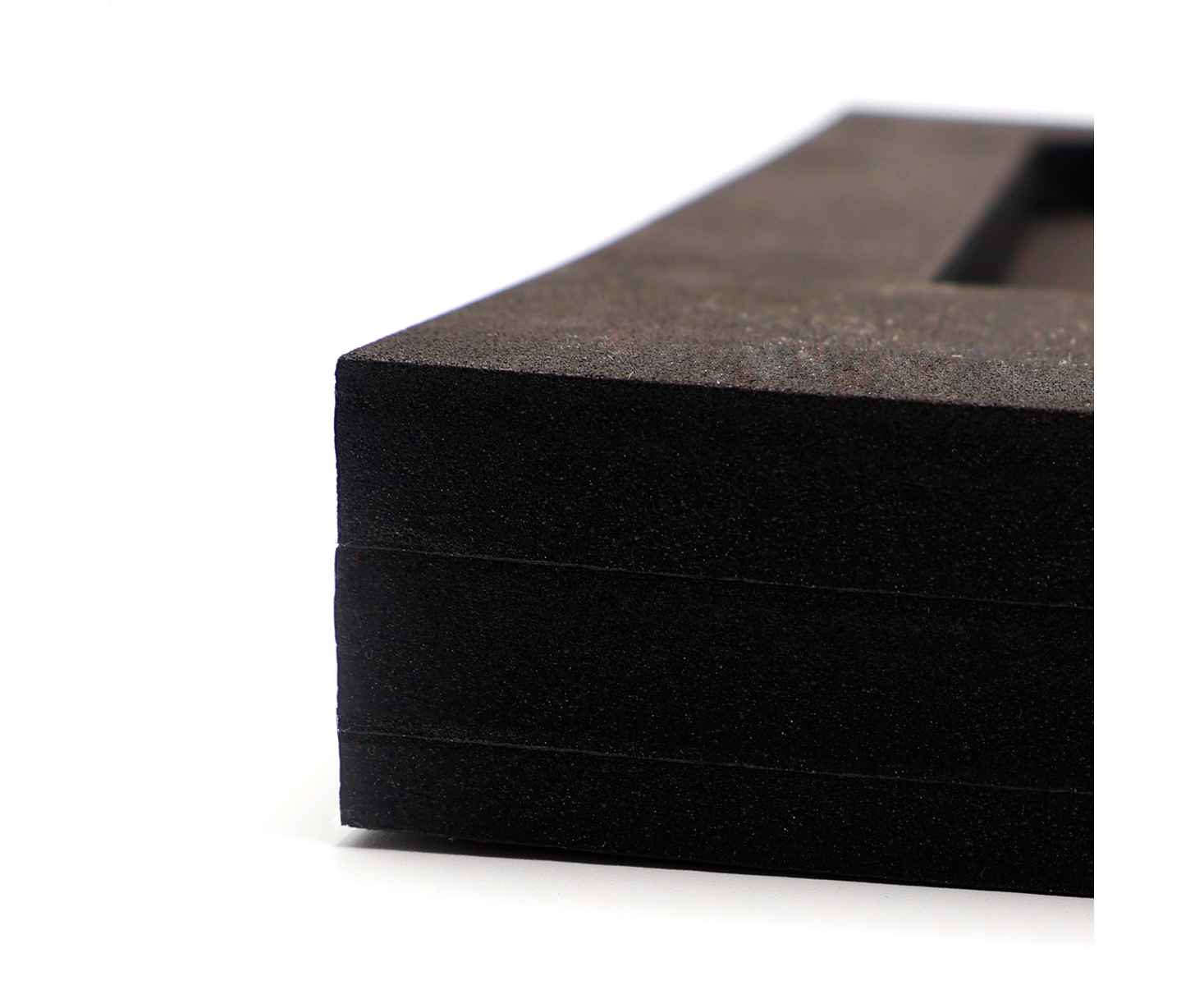 Ложемент, выполненный из черного ЭВА материала, представляет собой многослойную конструкцию, состоящую из 3х слоев: нижнего толщиной 5 мм, среднего 10мм, и верхнего — 10 мм. Согласно утвержденному макету, проемы для размещения предметов могут быть расположены во всех 3 слоях.