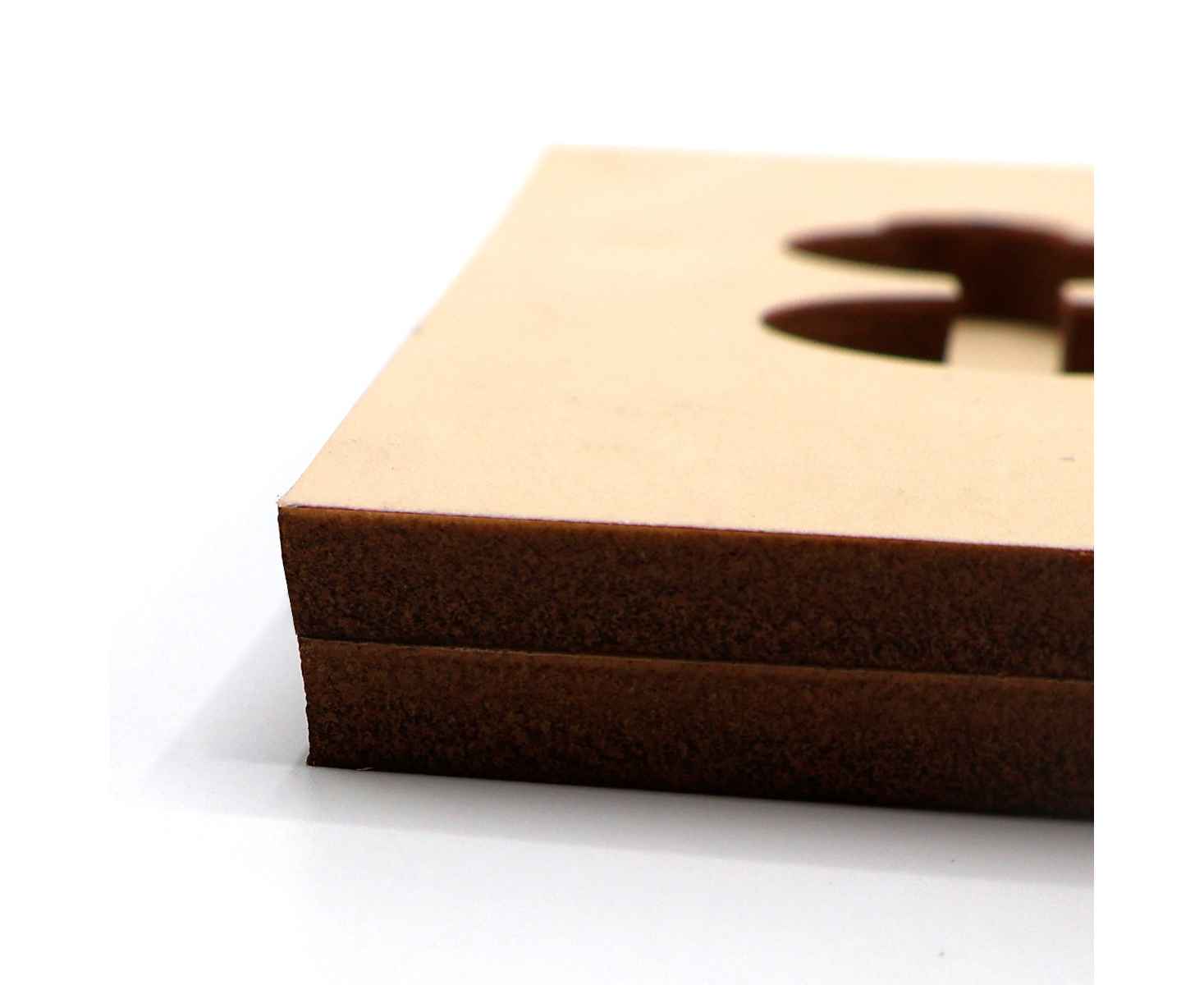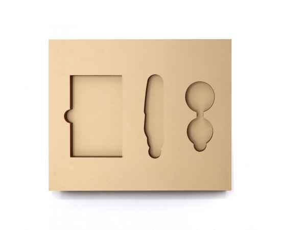 Ложемент, выполненный из бежевого ЭВА материала, представляет собой многослойную конструкцию, состоящую из двух слоев: нижнего толщиной 10 мм и верхнего — 10 мм. Согласно утвержденному макету, проемы для размещения предметов могут быть расположены как в одном, так и в обоих слоях.