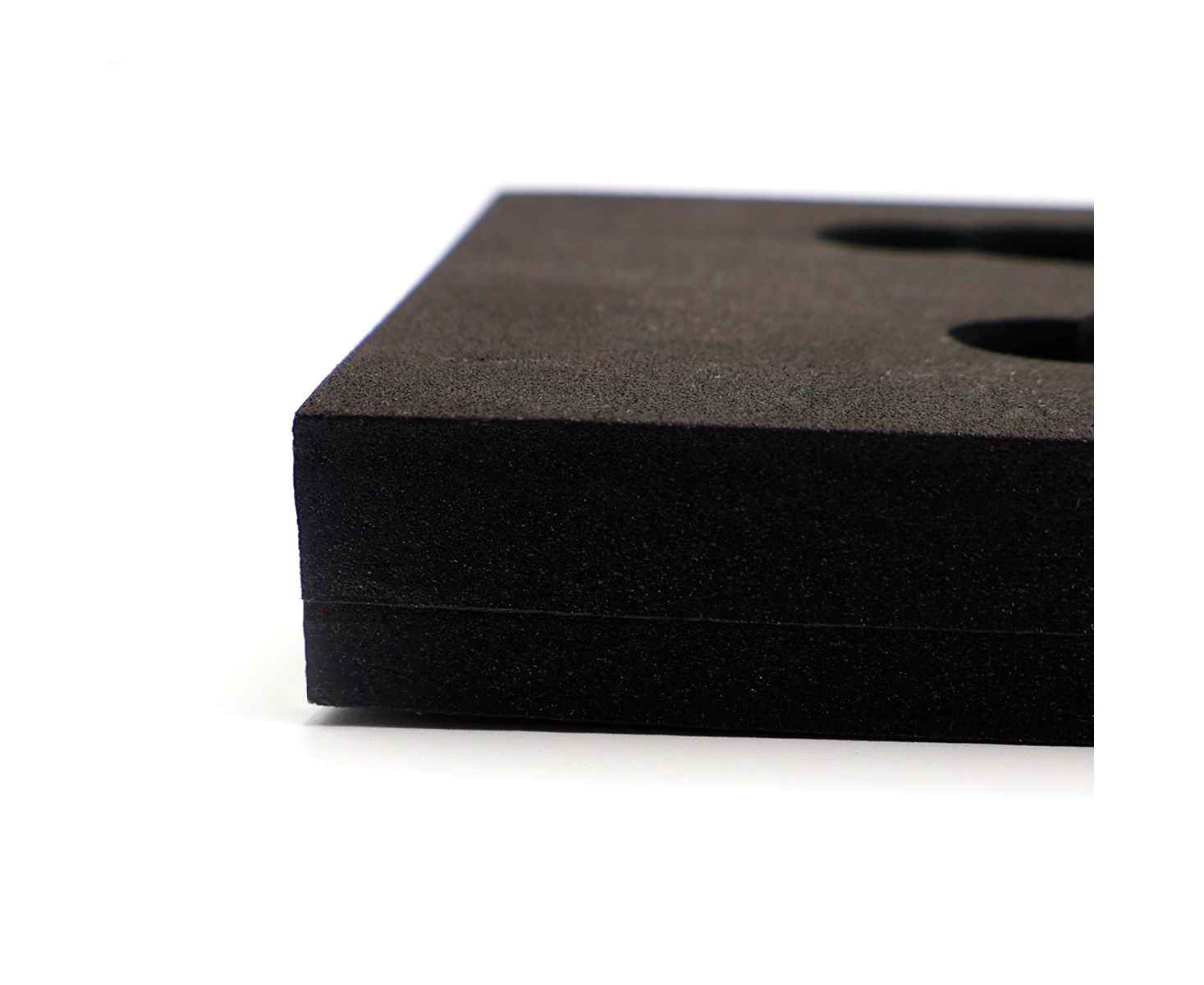 Ложемент, выполненный из черного ЭВА материала, представляет собой многослойную конструкцию, состоящую из двух слоев: нижнего толщиной 5 мм и верхнего — 10 мм. Согласно утвержденному макету, проемы для размещения предметов могут быть расположены как в одном, так и в обоих слоях.