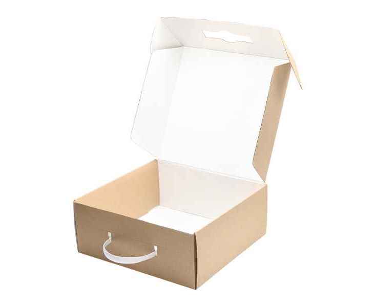 Коробка двухсторонняя. Может быть белая снаружи крафтовая внутри или наоборот, крафтовая снаружи белая внутри.