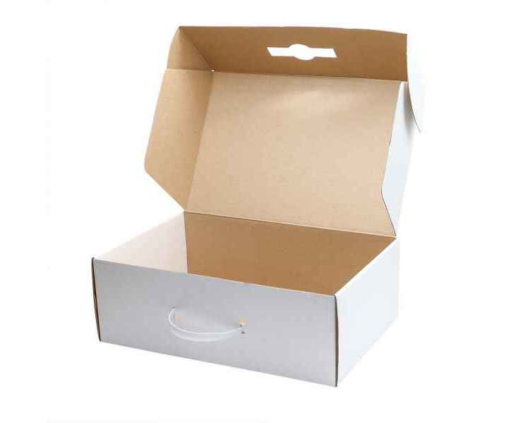 Коробка двухсторонняя. Может быть белая снаружи крафтовая внутри или наоборот, крафтовая снаружи белая внутри.