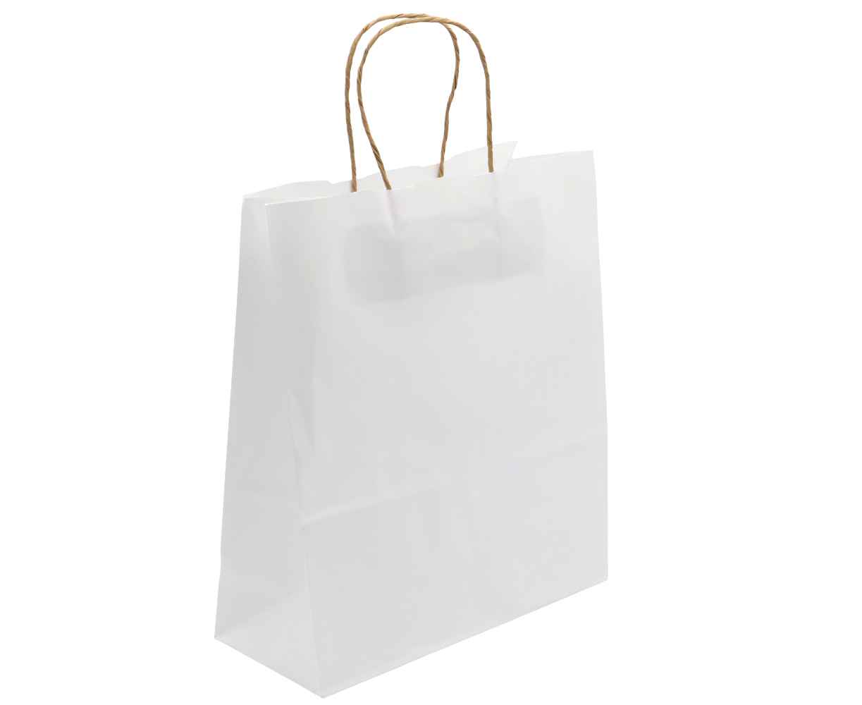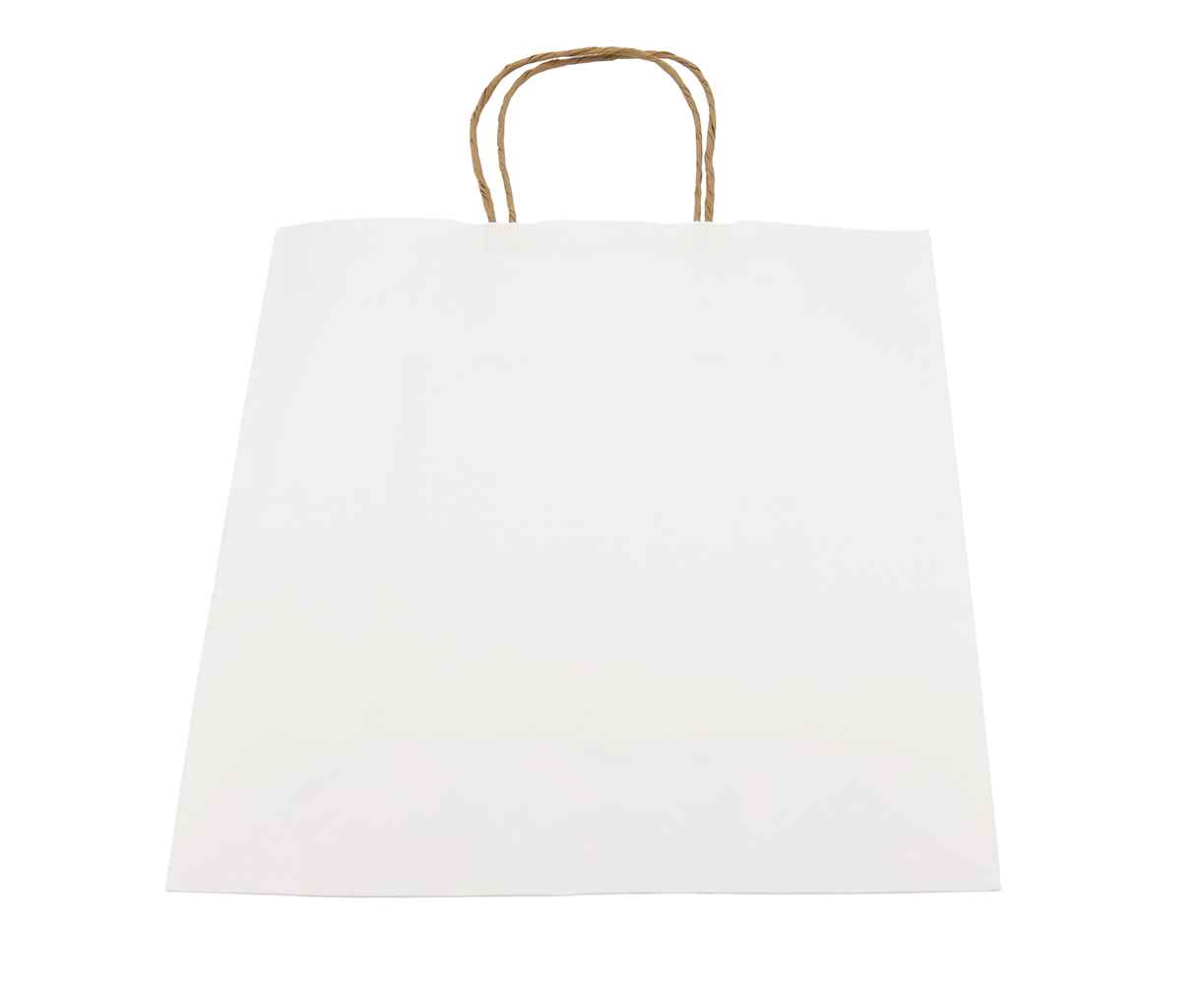 Бумажный пакет плотностью 110 г/м², с усиленными короткими ручками витой формы.