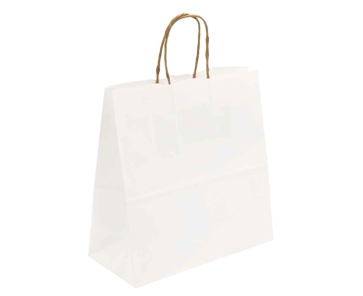 Бумажный пакет плотностью 110 г/м², с усиленными короткими ручками витой формы.