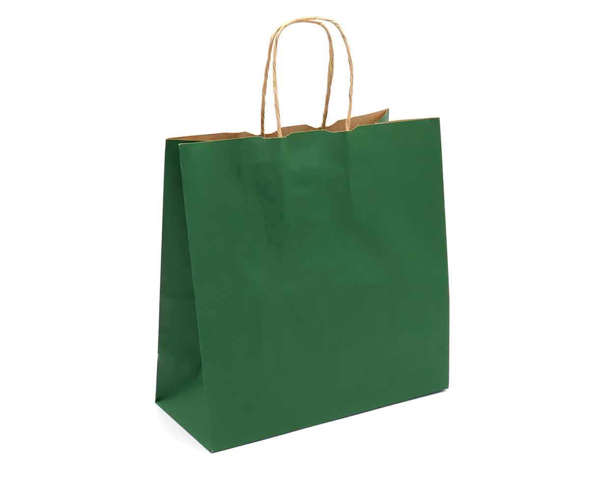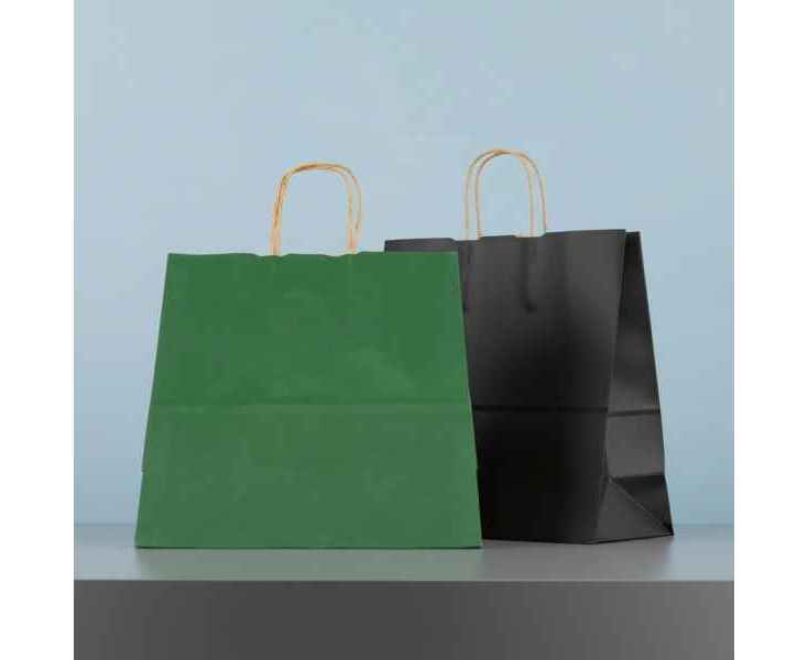 Бумажный пакет плотностью 110 г/м², с усиленными короткими ручками витой формы.