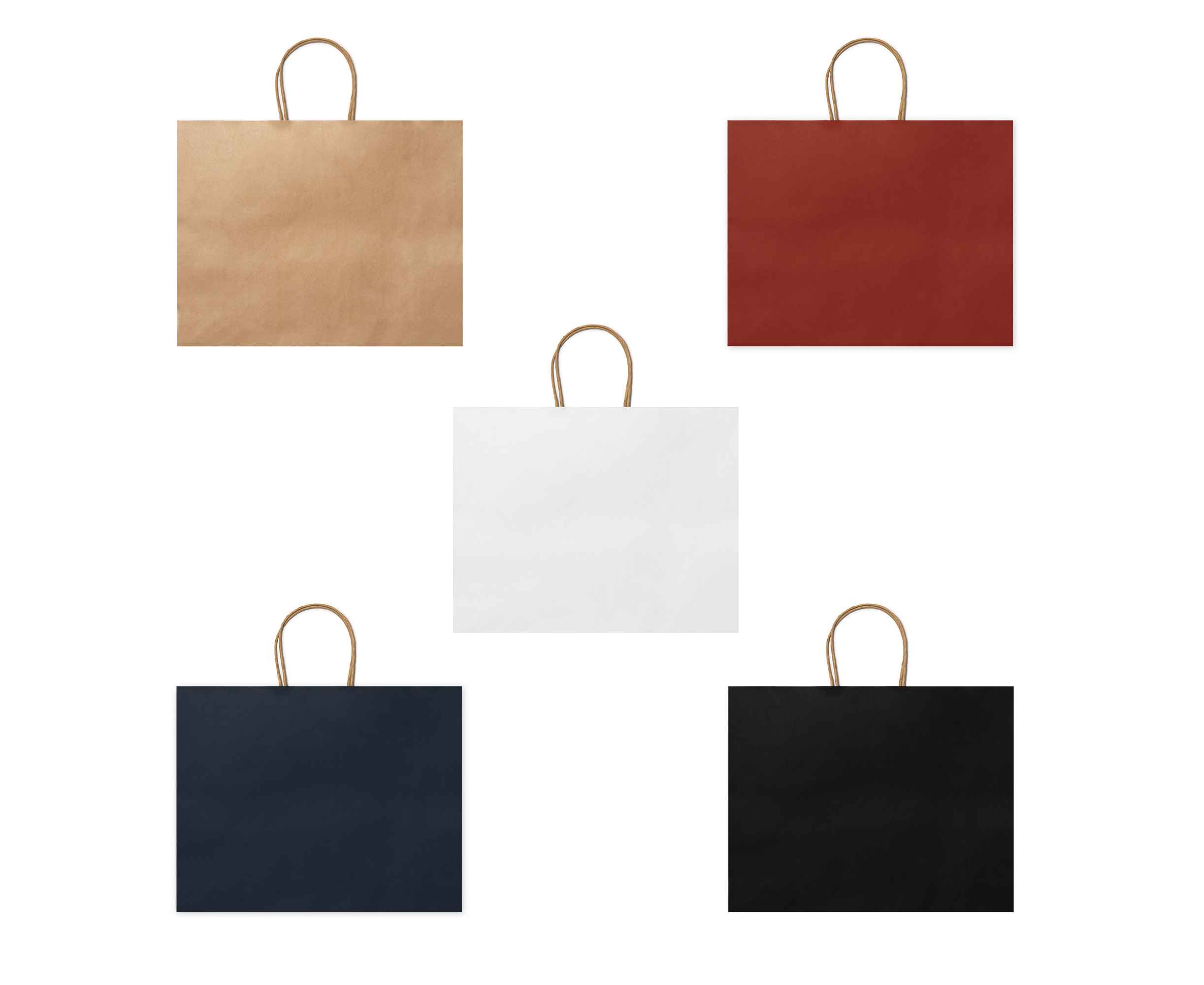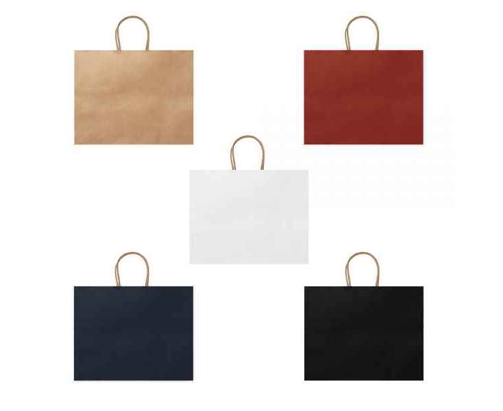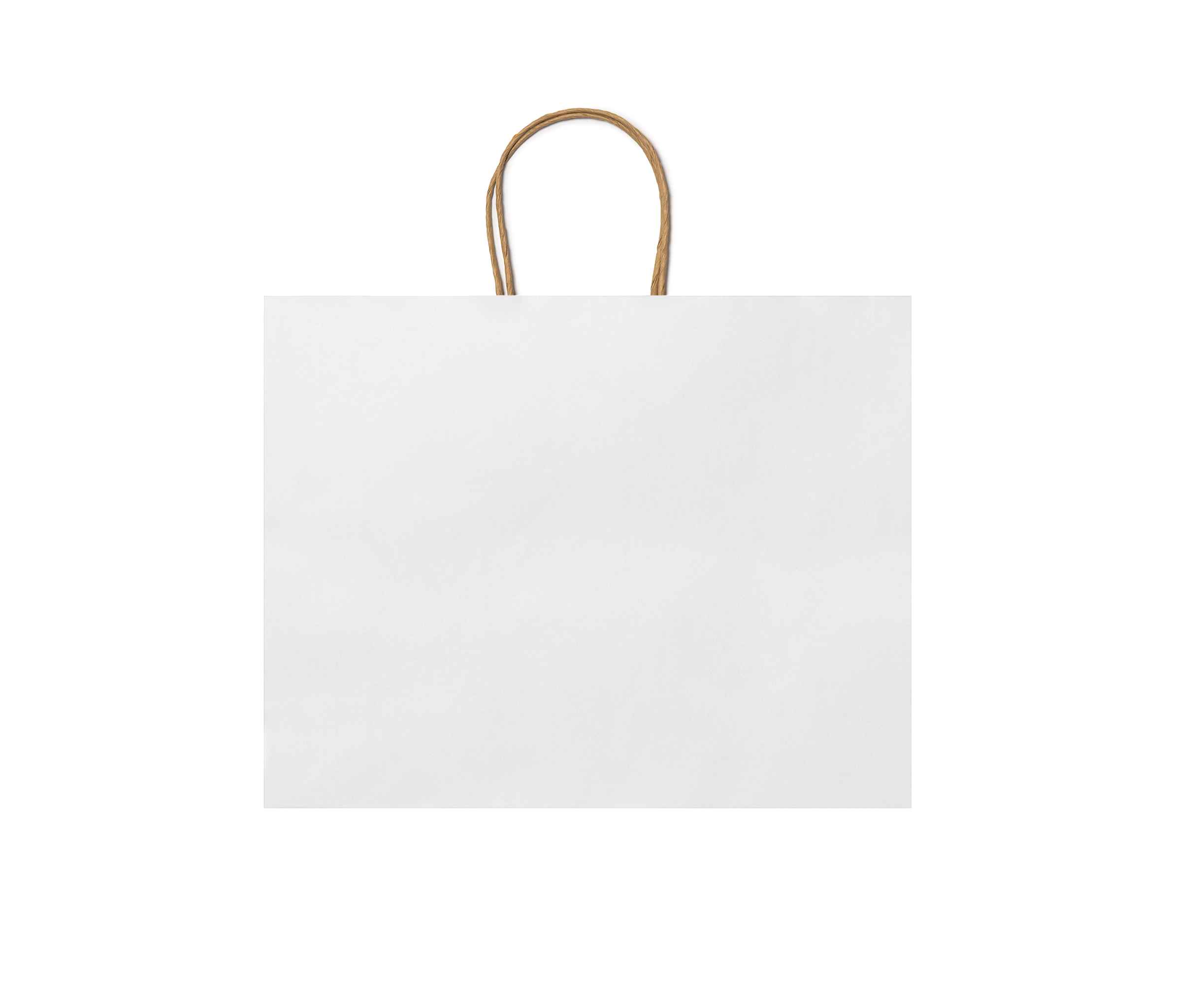 Бумажный пакет плотностью 110 г/м², с усиленными короткими ручками витой формы.