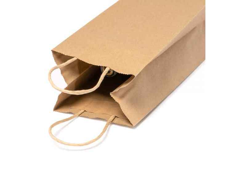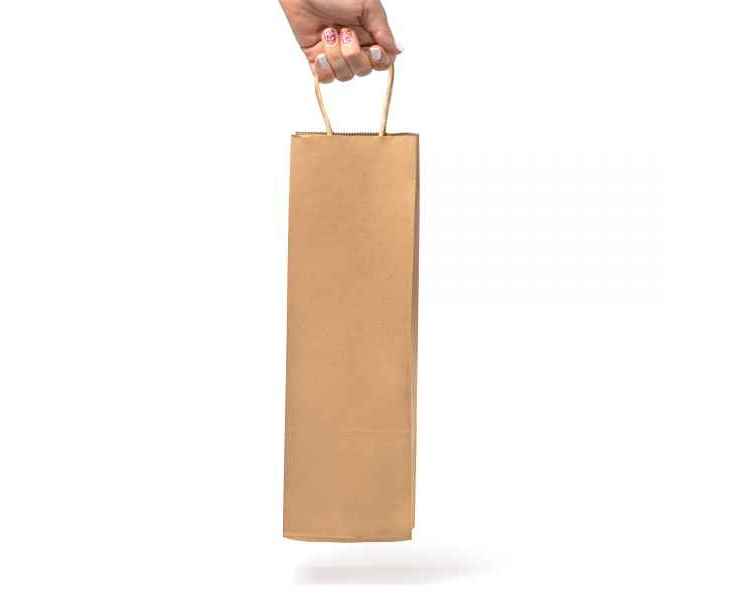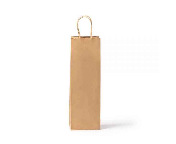 Бумажный пакет плотностью 100 г/м² натурального цвета. Усиленные короткие ручки витой конструкции. Идеально подходит для бутылок.