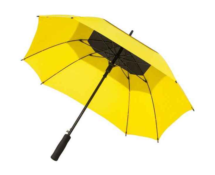 Модель зонта с двойным куполом особенно популярна среди гольфистов: под таким зонтом можно надежно укрыться от непогоды вместе со снаряжением и продолжать игру.