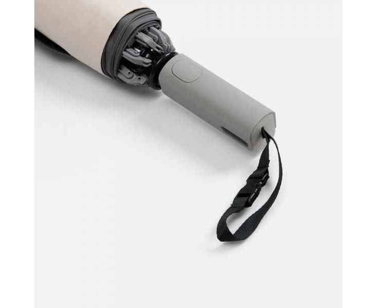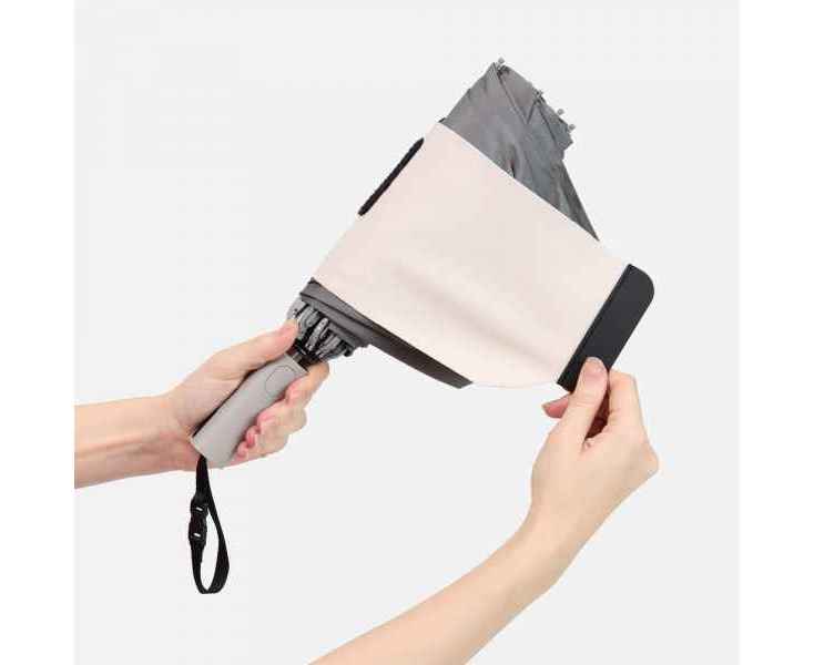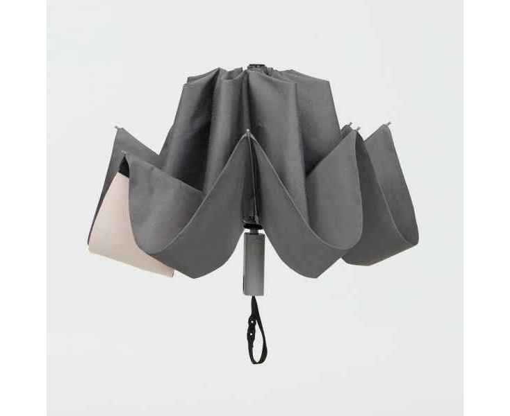 Складываясь после дождя, он прячет мокрую поверхность внутри, а сухая остается снаружи: в закрытом положении зонт не побеспокоит окружающих и не намочит одежду. Благодаря застежке на ремешке зонт удобно подвесить, например, на рюкзак.