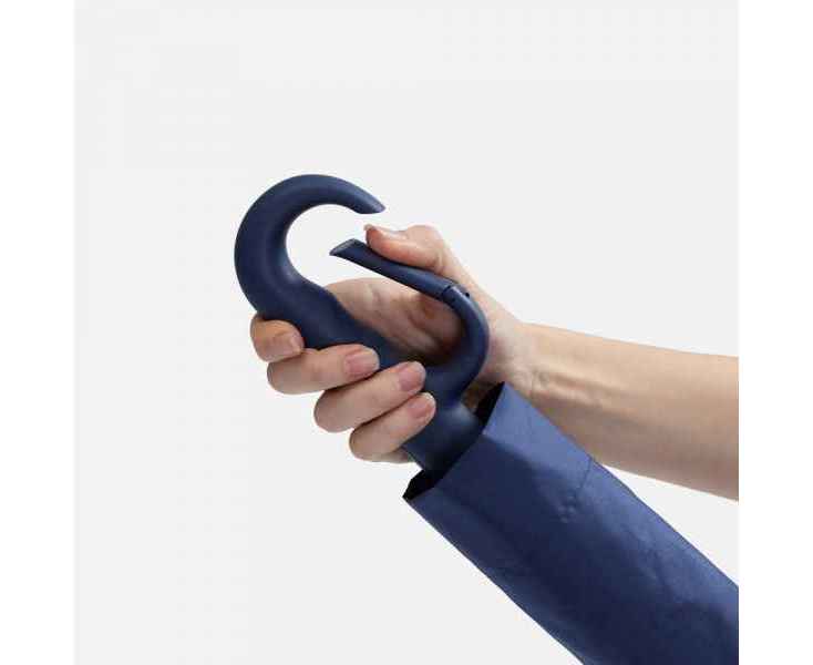 Преимущество обратного сложения заключается в том, что при закрытии внутренняя поверхность зонта остается снаружи, а мокрая сторона — внутри. За ручку-карабин удобно подвесить зонт на рюкзак или сумку.