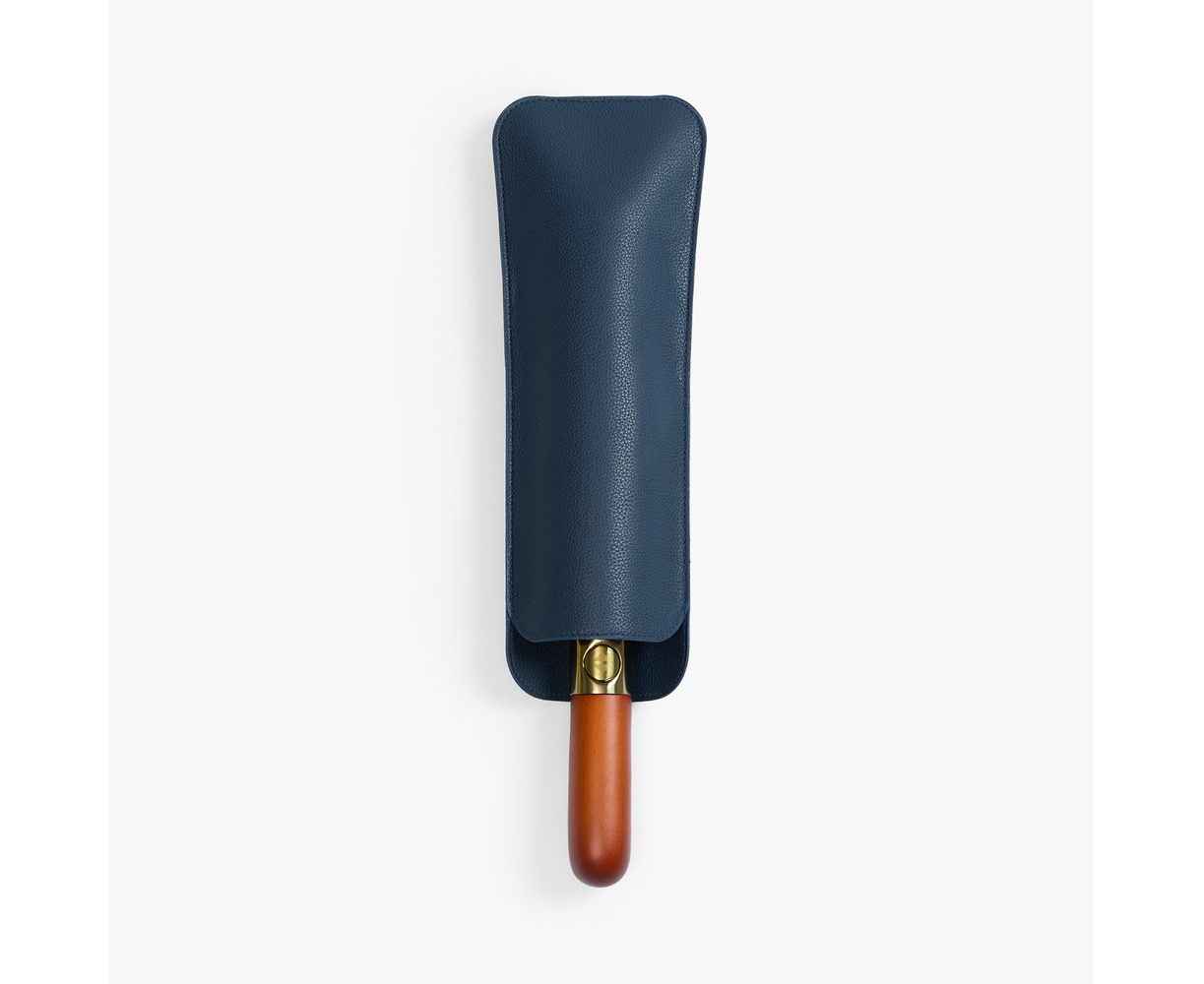 - Деревянная прямая ручка с кнопкой открытия и закрытия зонта
