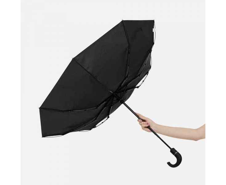 Классический складной зонт-автомат с эргономичной J-образной ручкой — надежный компаньон в дождливые ветреные дни.
