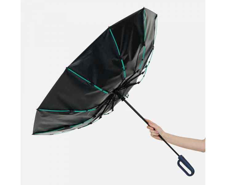 За ручку-карабин удобно подвесить зонт на рюкзак или сумку, покрытие от ультрафиолета защитит в самый солнечный день, а усиленные тройные спицы из стеклопластика выдержат коварные порывы ветра.