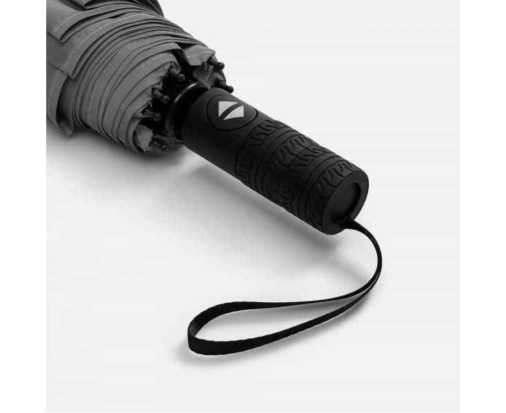 Стильный прочный зонт Tyre не боится ржавчины и нагрузок благодаря каркасу из стекловолокна. Светоотражающий кант делает этот зонт незаменимым спутником в темное время суток, а тактильный рисунок протектора шины на ручке превращает его в продуманный подарок для всех автолюбителей и партнеров этой сферы.