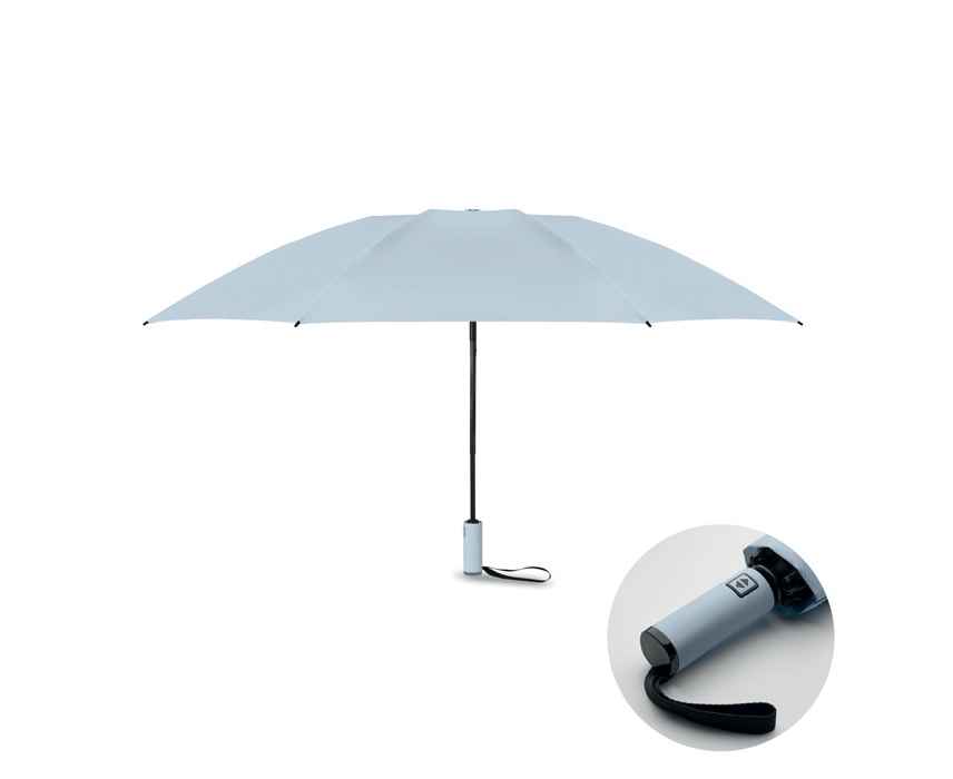 23-дюймовый реверсивный ветроустойчивый зонт автомат из полиэстера 190T RPET в чехле. Полностью черный каркас, спицы из стекловолокна и ручка из пластика с резиновым покрытием.