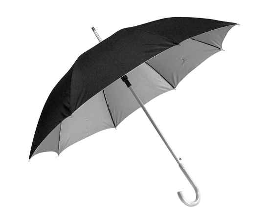 Подробнее о Зонт-трость с пластиковой ручкой 'под алюминий' 'Silver', полуавтомат, черный с серебром, D=103 см,