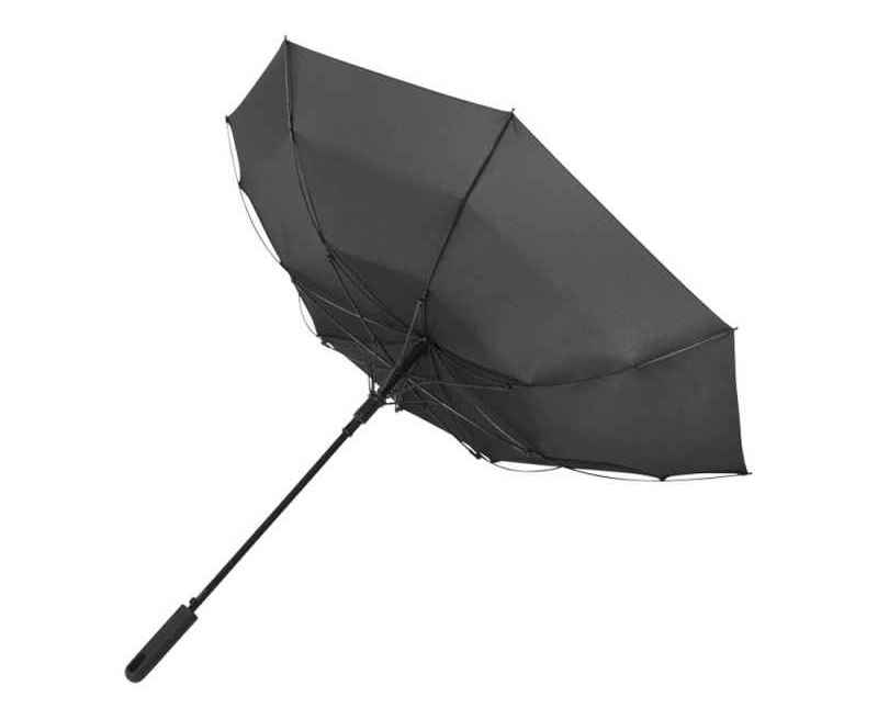 Противоштормовой зонт Noon 23 с противоветровой системой, которая делает зонт максимально гибким в ветреную погоду. Функция автоматического открытия, металлическая трость, спицы из стекловолокна и мягкая прорезиненная ручка. В комплекте чехол. Полиэстер эпонж.